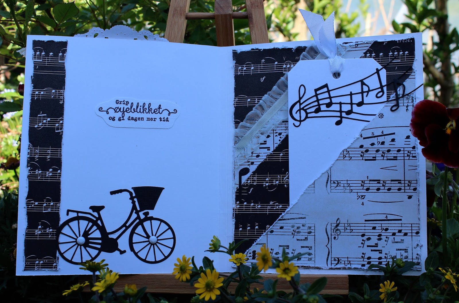 Inni kortet har jeg laget en stikklomme med 2 tags/ bannere som er stanset ut i mønsterarkene.